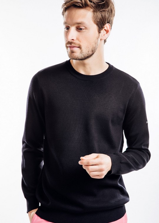 Maglia girocollo in lana merino 100%, maglia rasa elasticizzata su polsi e vita.
